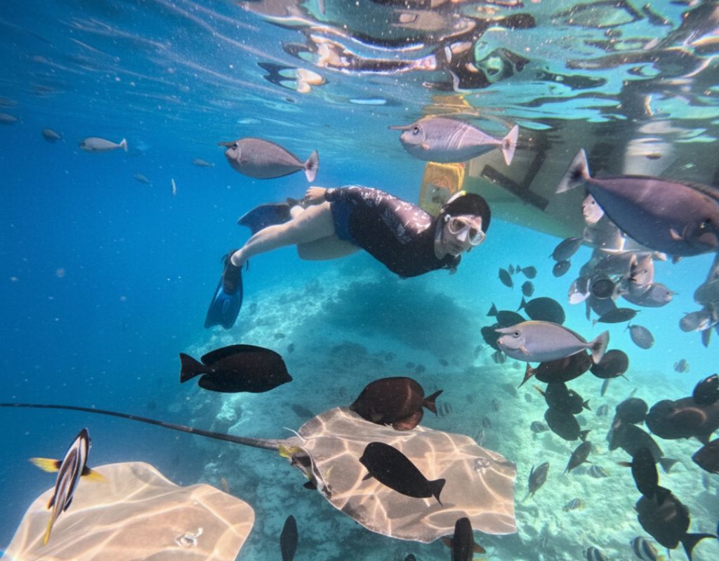 Arrive at Fish Tank and receive a safety briefing from professional guides. Enter the crystal-clear waters to explore the reef, encounter tropical fish, and witness stingrays gracefully gliding around, even feeding from hand if you’re lucky!