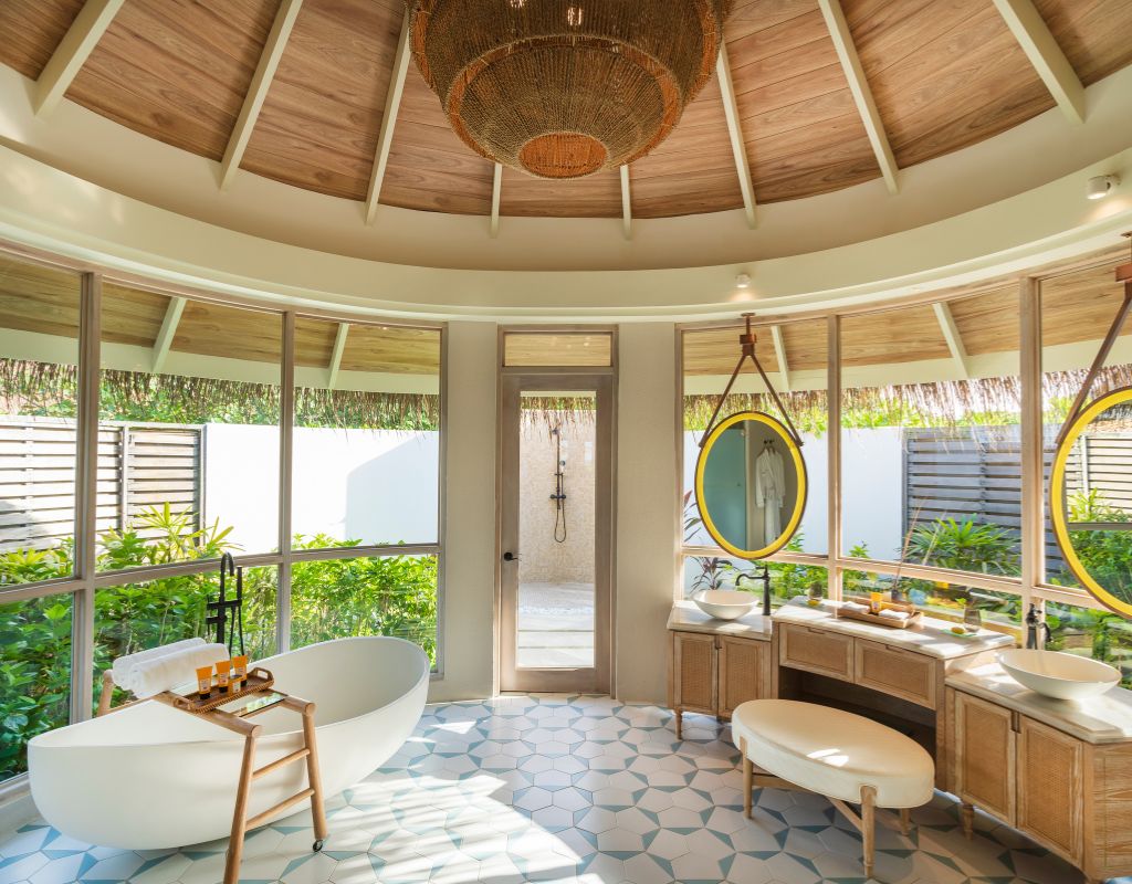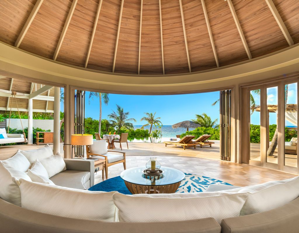 The Beach Residences are 490 sqm luxurious retreats set directly on the sand, offering direct access to the turquoise lagoon. Each features a spacious living area opening to a sun deck with a 60 sqm infinity pool, daybed, and swing chair. Elegantly furnished with Maldivian-inspired décor, the residences include a king-sized bed, indoor and outdoor showers, and modern amenities, providing a private and serene stay in paradise.