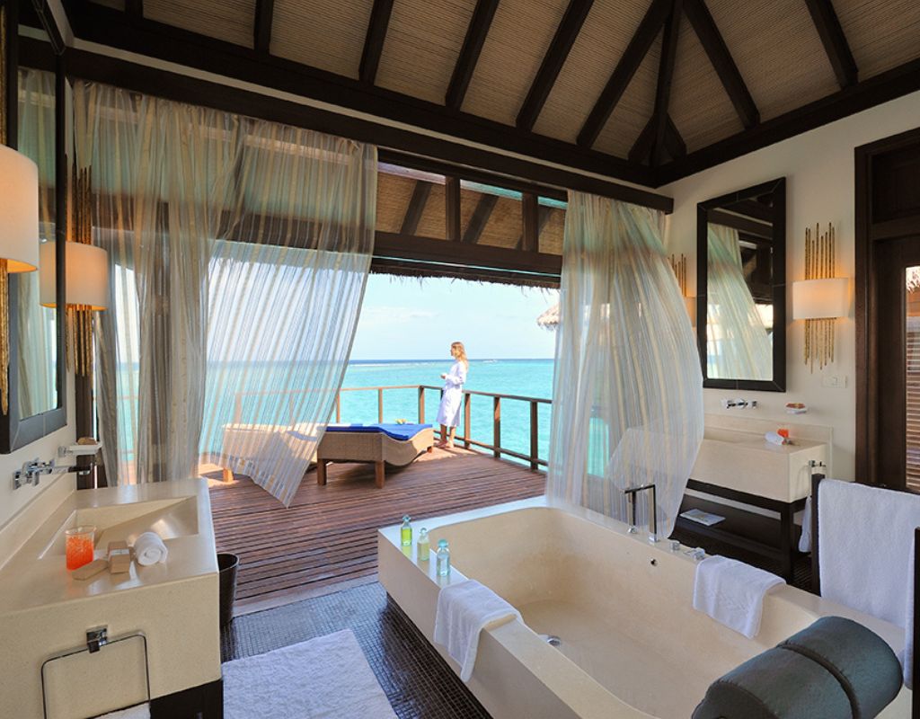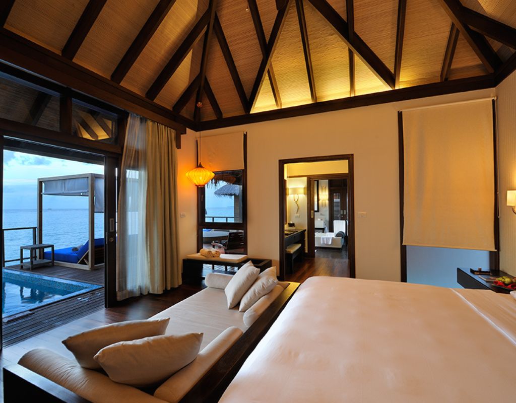The Coco Residence at Coco Bodu Hithi is an expansive 184 sqm overwater villa offering unparalleled luxury and privacy. Designed with high ceilings and expansive picture windows, the residence boasts a spacious sunken living area, a plush king-sized bed, and an indulgent bathtub for two. The private sundeck features a four-poster daybed, perfect for relaxation while enjoying panoramic views of the Indian Ocean. Guests can immerse themselves in the serene surroundings, with direct access to the lagoon and house reef for snorkeling adventures.