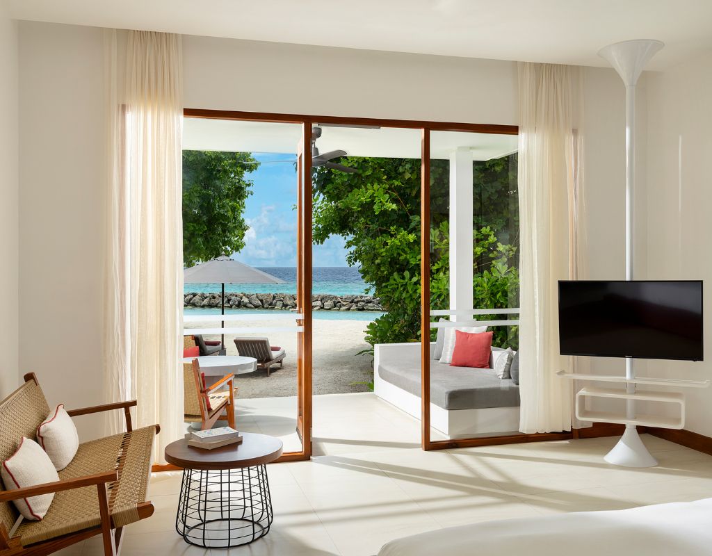 Stretching out across 85 sqm, the Deluxe Beach Bungalows at Dhigali offer a bright, breezy escape just a few steps from the beach. With a king-sized bed and space for a third guest, these bungalows blend comfort with intimacy. The open-air bathroom, featuring a semi-open rainfall shower, lets the tropical surroundings in, while your veranda overlooks golden sands and offers direct access to the reef-lined shore.