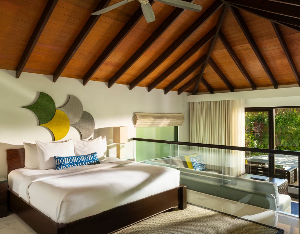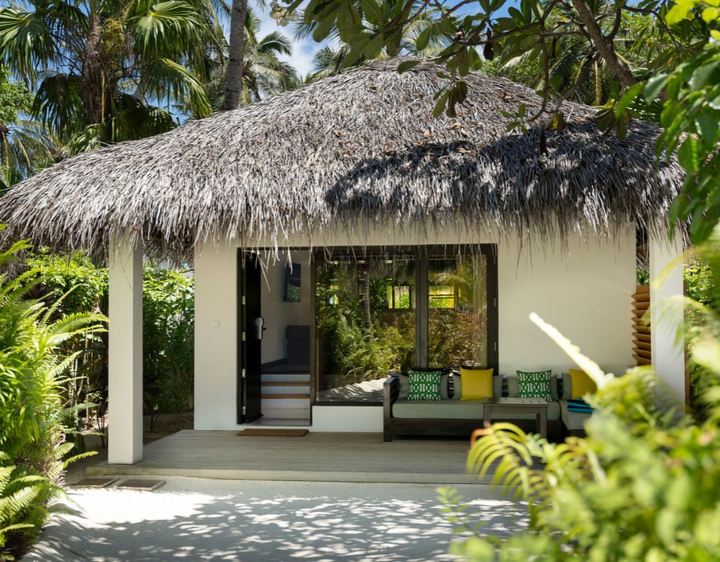 Step into the Deluxe Villa at Velassaru, where beachfront tranquility meets elegant tropical design. Just steps from the sand, this 75 sqm villa features a private garden oasis perfect for lounging in the shade or under the sun. The indoor-outdoor bathroom design includes both shower and outdoor rainfall options along with a double vanity, creating a spa-like feel in natural surroundings.
