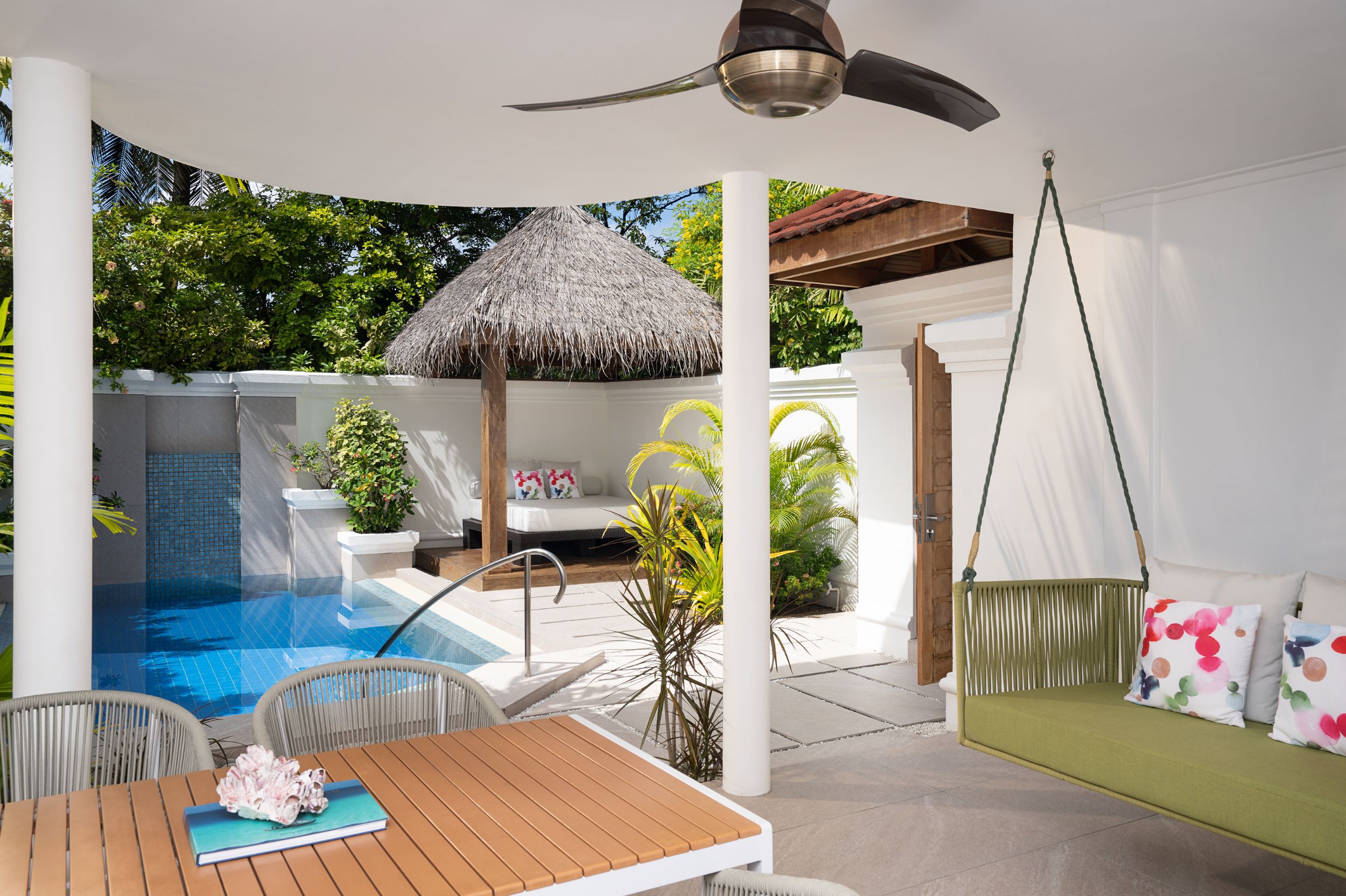The Family Villa at Kurumba Maldives offers a spacious and luxurious retreat, ideal for families seeking comfort and privacy. Spanning 306 sqm, this two-level villa features a king-sized bedroom upstairs and a separate living area downstairs, providing ample space for relaxation and quality time together. The villa is designed with families in mind, offering thoughtful touches and amenities to ensure a comfortable stay. The private outdoor area includes a plunge pool, perfect for unwinding after a day of exploring the island. With its blend of elegance and functionality, the Family Villa provides a perfect setting for families to create lasting memories in the Maldives.