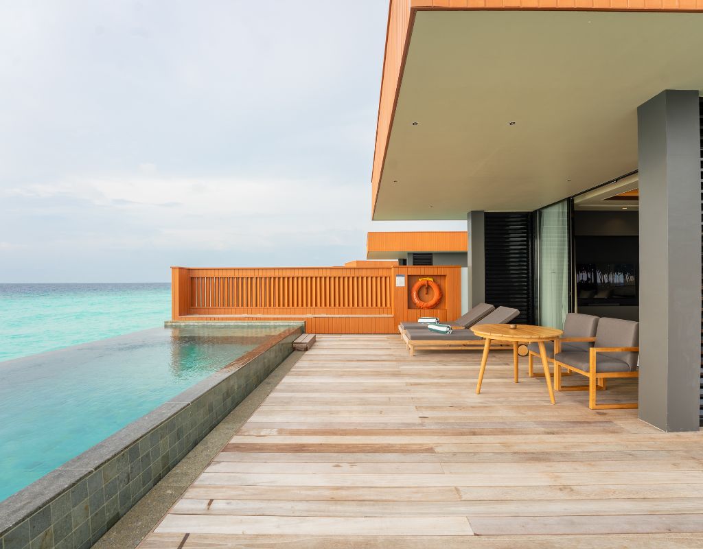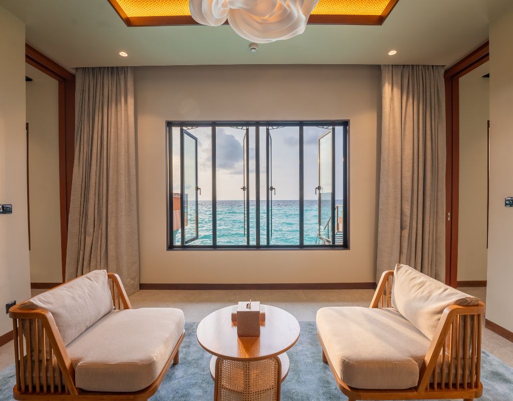 The Ocean Pool Villa 2 Bedroom at Veligandu Island Resort & Spa offers a luxurious overwater retreat designed for families or groups seeking an unparalleled Maldivian experience. Located on the serene northeast corner of the island, the villa provides breathtaking sunrise views and direct access to the house reef. Inside, two master bedrooms feature king-sized beds, elegant interiors, and stylish bathrooms with ocean-view tubs and rain showers. A spacious living area and private deck with a plunge pool make it perfect for relaxing, dining, and enjoying the Indian Ocean panorama.