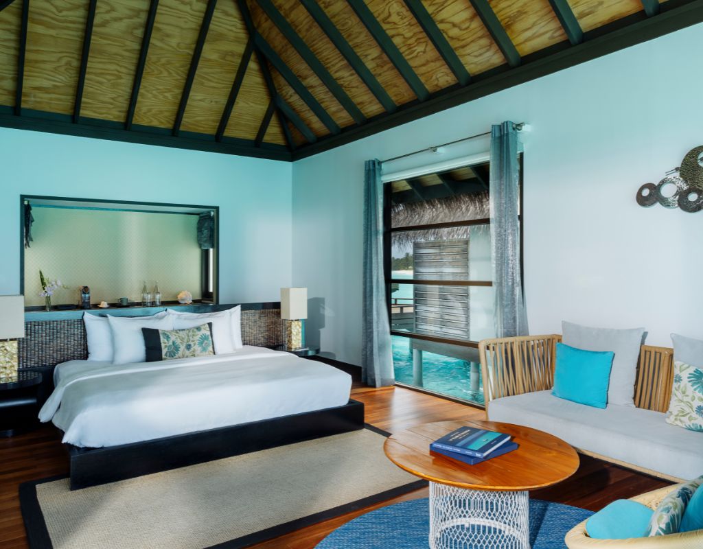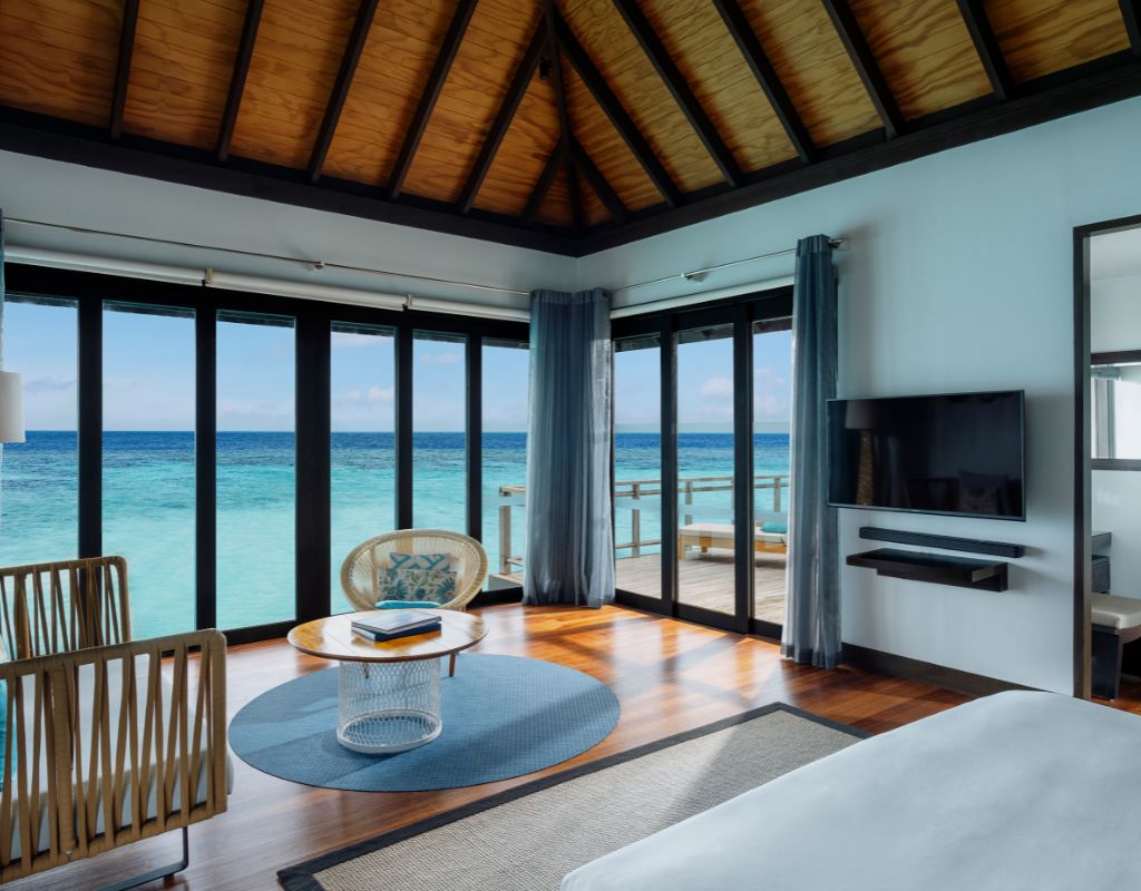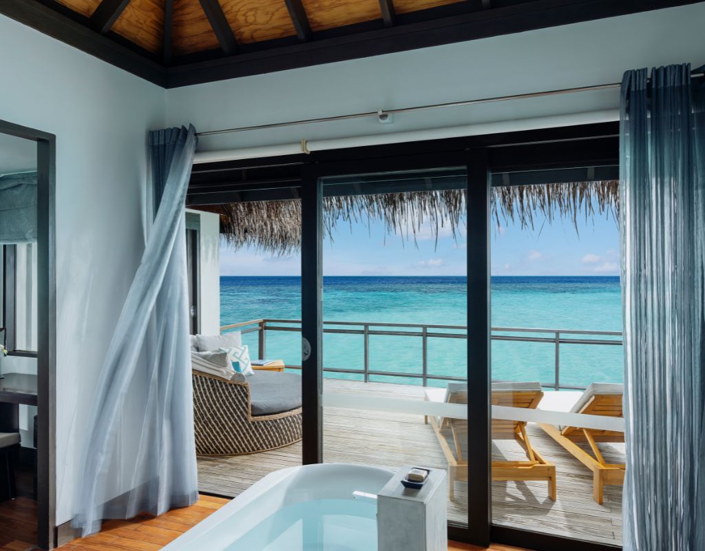 The Water Villa at Velassaru Maldives offers an overwater sanctuary with 112 sqm of space, designed for guests seeking a serene and private retreat. This villa features a king-sized bed, a spacious bathroom with double vanity, bathtub, and separate shower, and a private sundeck with direct access to the turquoise lagoon.