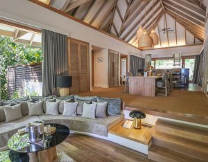 The Grand Premier Beach Villa with Pool at Coco Bodu Hithi offers 300 sqm of luxurious beachfront living, blending tropical elegance with modern comfort. Each villa features a king-sized bed, a sunken living area, and a spacious open-air lounge, providing ample space for relaxation. The private courtyard is a highlight, complete with a plunge pool and daybed, perfect for unwinding in privacy. Guests can enjoy both indoor and outdoor showers, enhancing the connection with nature.