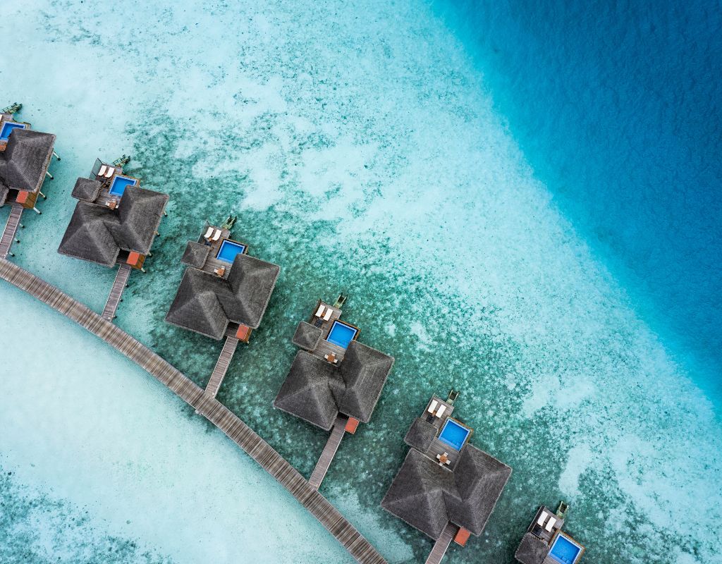 Huvafen Fushi is a refined sanctuary in North Malé Atoll, about 30 minutes by speedboat from Malé International Airport, where designer chic meets barefoot luxury. Forty-six distinctive bungalows and pavilions, each with its own plunge pool, are tucked amid palms and perched over shimmering lagoons or along white-sand beaches. Days flow from waking up to sunrise views, relaxing by your private deck, snorkeling off the house reef, to indulging in immersive wellness at the Spaquarium, an underwater spa like no other. The resort also offers stylish dining across several venues, artful interiors, warm service, and memorable moments crafted for romance, rejuvenation, or simply escaping.