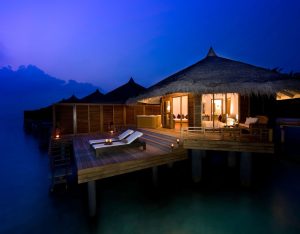 Hidden among the island’s lush gardens, the Beach Bungalow at Kuramathi is designed for couples celebrating romance. With a king-sized four-poster bed and an indoor daybed, it offers a dreamy retreat where comfort meets nature. The open-air bathroom features a private whirlpool, rainfall showers both indoors and outdoors, and twin vanities, creating a sense of indulgence. Outside, the wooden deck with sun loungers and daybed set the scene for relaxing together beneath the stars.