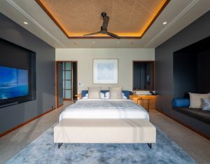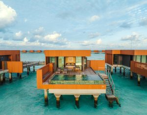 The Sunset Ocean Pool Villa 2 Bedroom at Veligandu Island Resort offers a luxurious overwater escape designed for families or groups. Located on the northeast side of the island, the villa provides stunning sunset views and direct access to the house reef. Inside, two master bedrooms feature king-sized beds, elegant interiors, and stylish bathrooms with ocean-view tubs and rain showers. A spacious living area and private deck with a plunge pool make it perfect for relaxing, dining, and enjoying the Indian Ocean panorama.