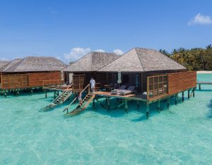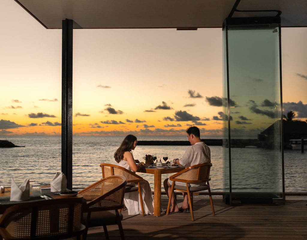 The Sunset Ocean Villas at Veligandu Island Resort & Spa offer an intimate overwater retreat designed for couples seeking serenity and breathtaking sunset views. Nestled on the island’s pristine northeast corner, each villa provides a secluded ambiance, perfect for romantic getaways. The villa features a spacious open-air bathroom with an ocean-view bathtub, indoor and outdoor rain showers, and an overwater hammock net for lounging under the stars. Direct access to the house reef invites guests to explore vibrant marine life just steps from their villa.